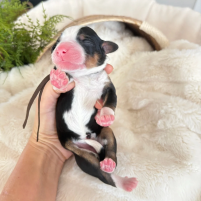 Puppies are tri-color and cream